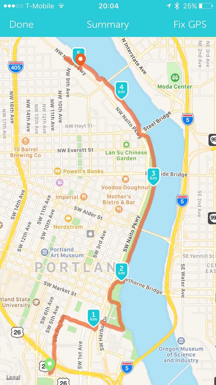 Well, that was a day of exploring Portland’s somewhat deliberately weird side. Started with a second run (5k downhill and then along the riverside park). Here’s another map, in case you were wondering.
